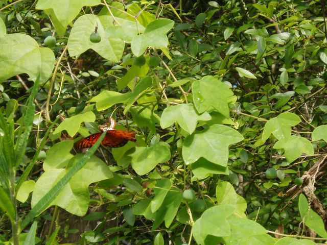Yellow Passion Vine (Passifloraceae lutea) with Gulf Fritillary