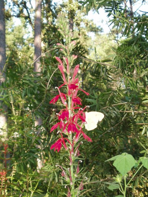 Cardinal Flower (Lobelia cardinalis) with Sulphur Butterfly