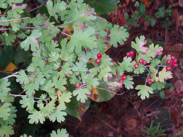 Parsley Hawthorne (Crataegus marshallii) red berries in fall