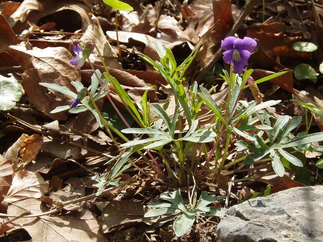 Early Blue Violet (Viola palmata) has 2 leaf shapes